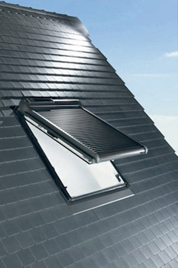 ROTO-Rollladen ZRO S, Solar, mit Elektroantrieb, Akku und Solarmodul, sowie integriertem Funkempfänger und Wandsender Funk.