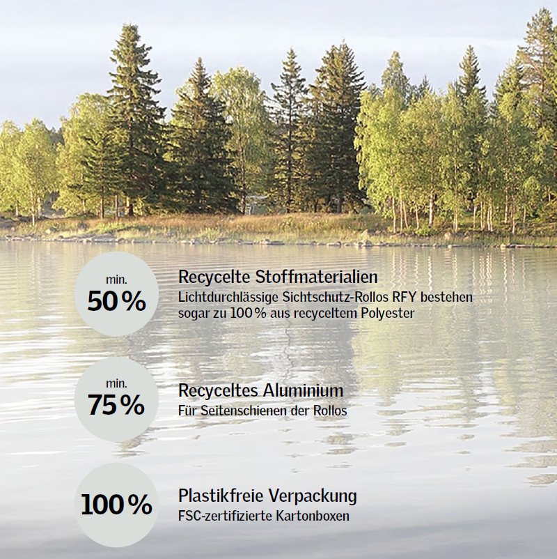 Alle Rolls sind verdunkelnd aus recyceltem Material gefertigt. Für einen bewussten Umgang mit Ressourcen und für ein nachhaltiges Zuhause mit natürlichen Farben.